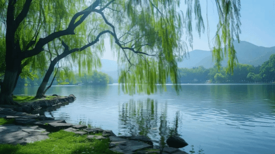 是河流两岸的杨柳依依