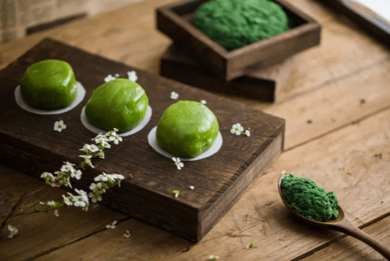 以青艾和糯米粉制皮